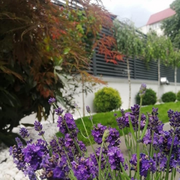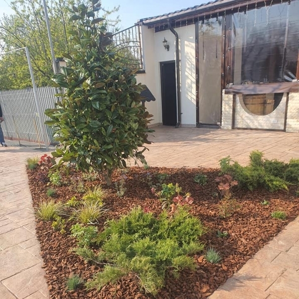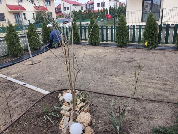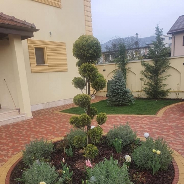Plantari arbori, arbusti si flori. Gazonul, pietrisul decorativ/pavajul, formele geometrice create de acestea sunt excelent puse in evidenta prin prezenta unui arbore solitar, aranjamente de arbusti decorativi si flori, plante perene si de sezon.