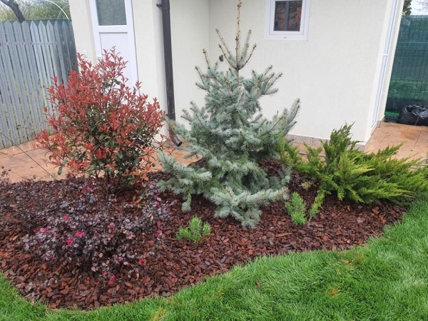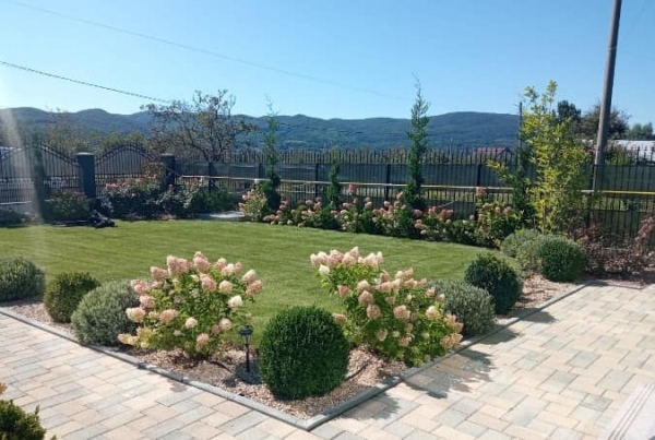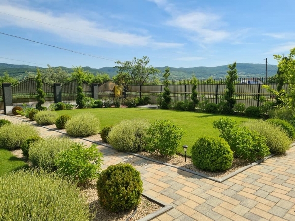 Plantari arbori, arbusti si flori. Gazonul, pietrisul decorativ/pavajul, formele geometrice create de acestea sunt excelent puse in evidenta prin prezenta unui arbore solitar, aranjamente de arbusti decorativi si flori, plante perene si de sezon.